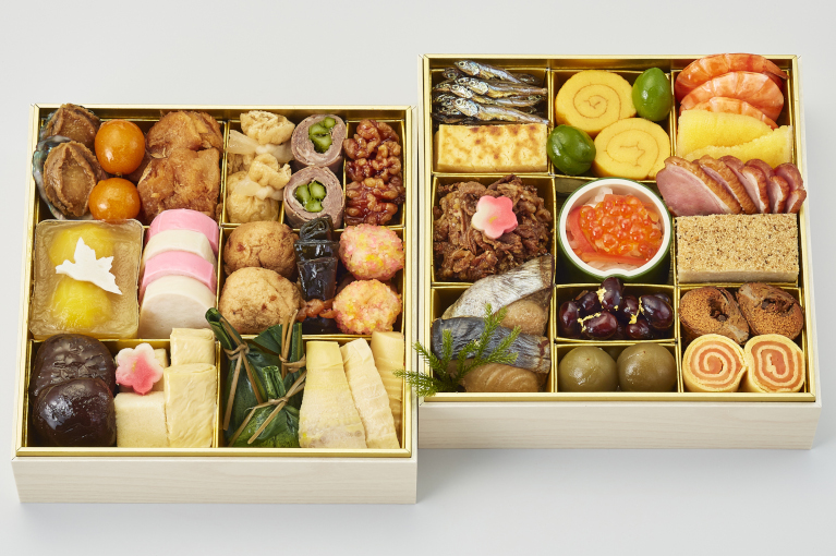 湯葉の含め煮や鮭年輪巻き・栗金団など素材の持ち味を活かしおせち料理を仕立てました。調理師が丹精込めてつくり上げた伝統の味ををご家庭でお楽しみください。