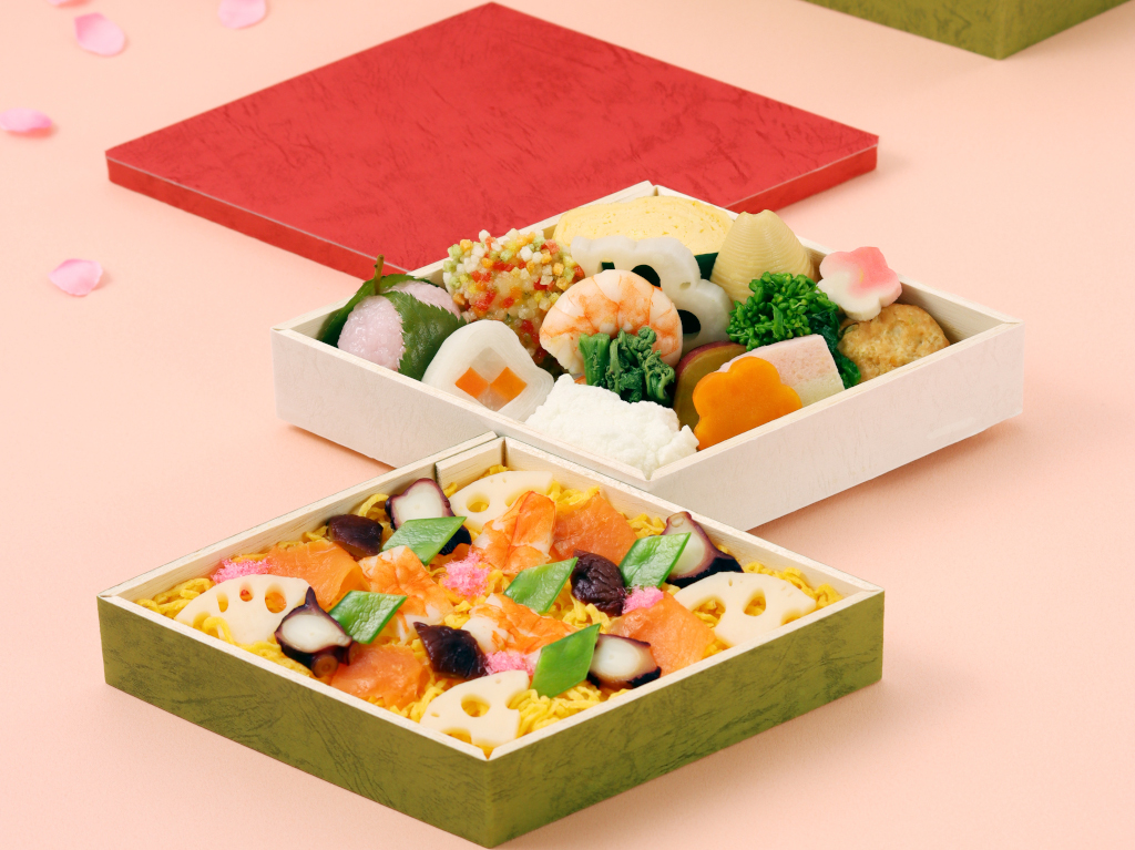 女の子の健やかな成長を願って、華やかなお料理でお祝いを。サーモン酒粕焼きや三色真丈などひな祭りならではのお料理に加え、菜の花や筍など旬の食材を使ったお料理を詰め合わせました。桃のお節句を上品に彩る心浮き立つ彩り豊かな二段重です。